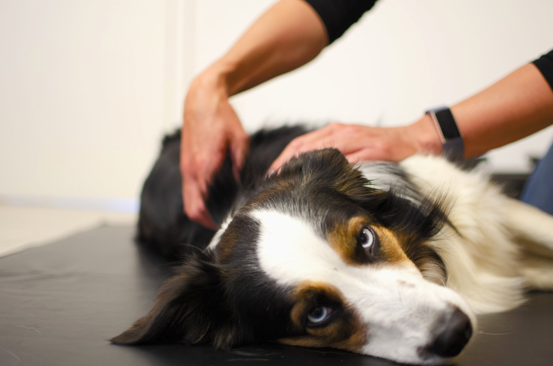Hier wird das Gesamtbild des Tieres beurteilt und ein Tast- sowie Bewegungsbefund erstellt.